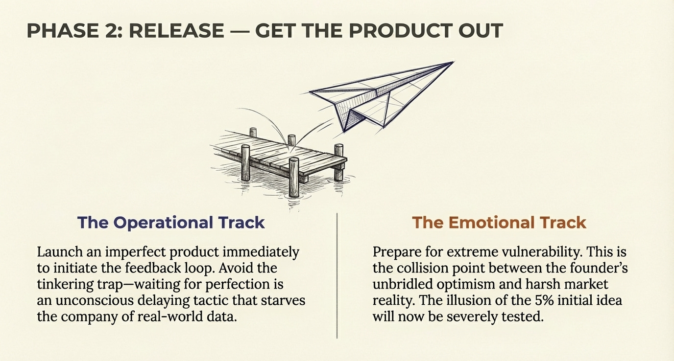 This is where many first-time founders freeze. They fall into the trap of perfectionism. They want to add just one more feature or do one more redesign before anyone sees it.