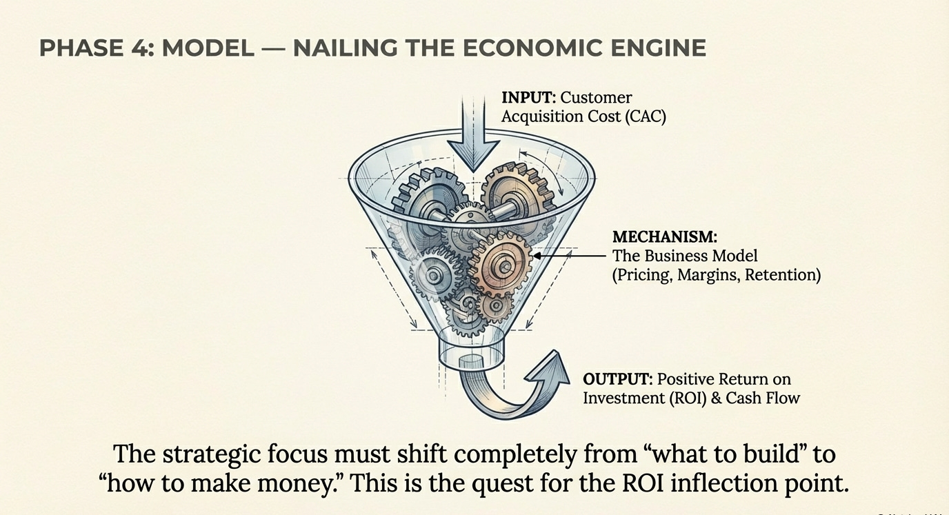 Once you have a product that people love, you need to figure out how to make actual money. The Model phase is about proving the economics of your business.