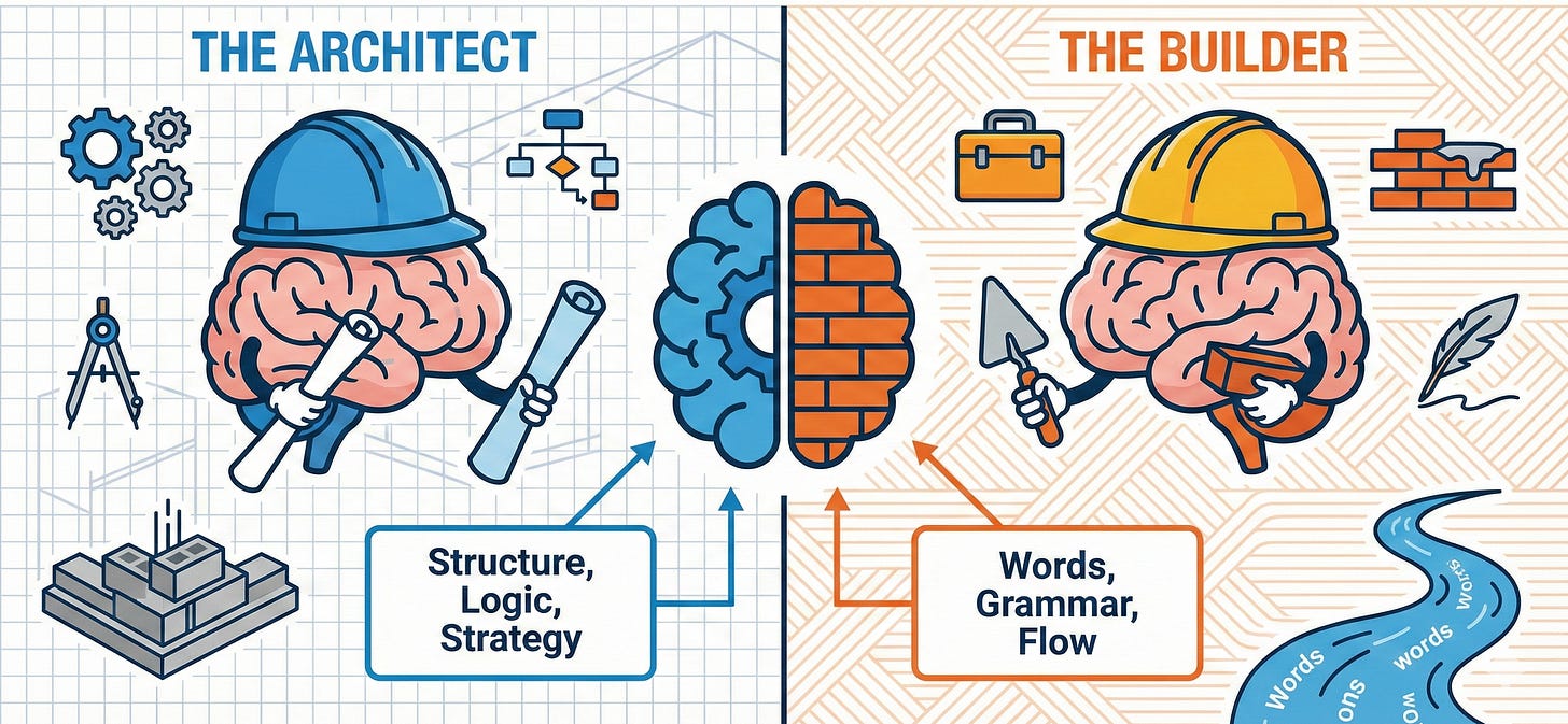 Trying to do both at once is exhausting. This method separates them. The “Ramble” lets you be the Architect without worrying about the bricks. The “Interview” forces you to stress-test your blueprints.